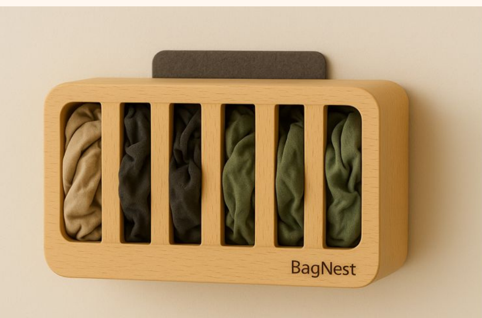 BagNest keeps your reusable bags neat at home and ready when you leave — so you never deal with the “bag pile” or forget them at the store.